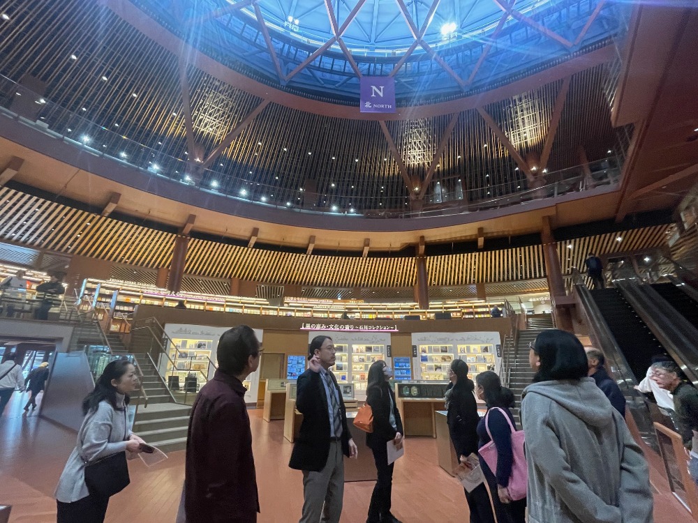 2日目は、午前中に石川県立図書館と金沢美術工芸大学(外観のみ)、午後は金沢海みらい図書館を見学しました。石川県立図書館では、同館の指定管理者である図書館流通センター北陸支社の林支社長に解説いただき、利用者だけでなく管理者側の視点での特徴などを教えていただきました。最後に金沢海みらい図書館では、再度中井支部長の解説でじっくりと館内を見学しました。2日間で3つの図書館を見学することで、それぞれの空間的な違いから運営方法の違いなどを知ることができました。また、図書館研究の専門家による解説があることで、例えば書架のデザインや配架方法など、より深く図書館の空間・インテリアを理解することができ、とても充実した見学会となりました。