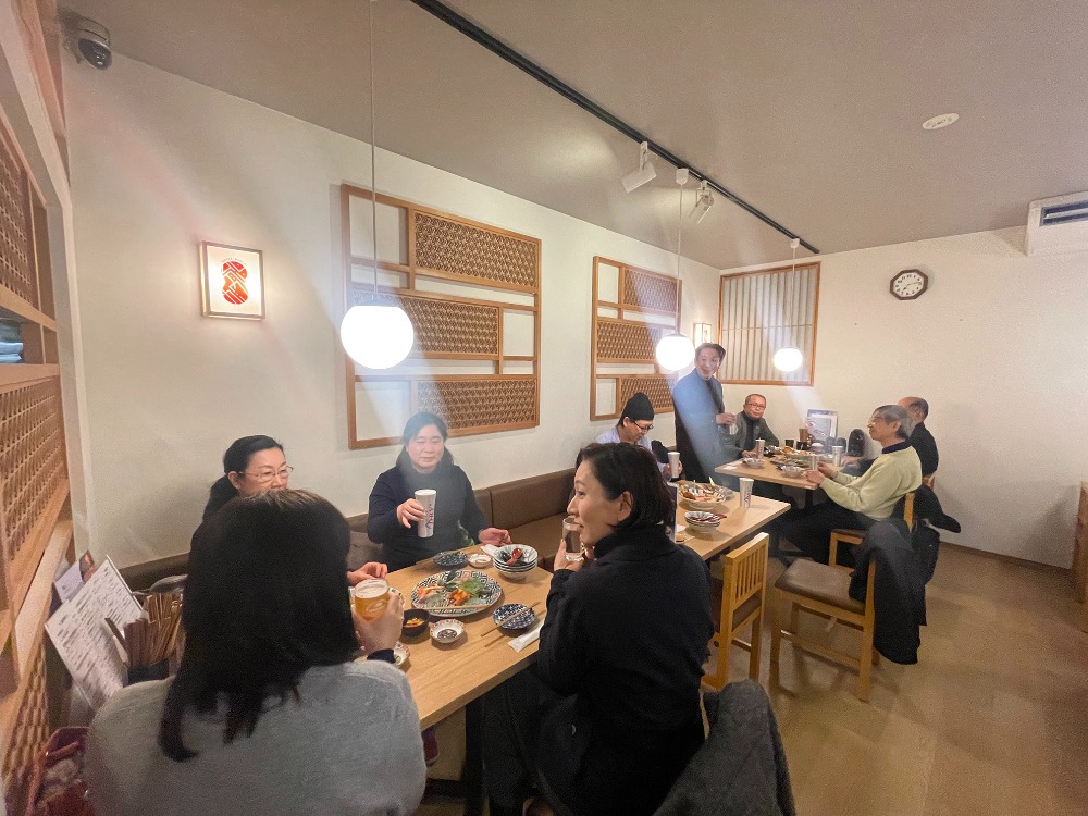 講演会後には恒例の研究交流懇親会を開催しました。今年は、藤が丘駅近くの居酒屋おばんざい鮮魚鉢屋を会場として美味しい料理を食べながら、講演会講師の菅井さんにも参加していただき、大盛況の懇親会となりました。
